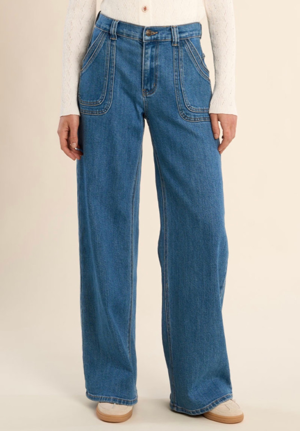Wide jean. high waist, side pockets, inseam length 80cm for a 27.