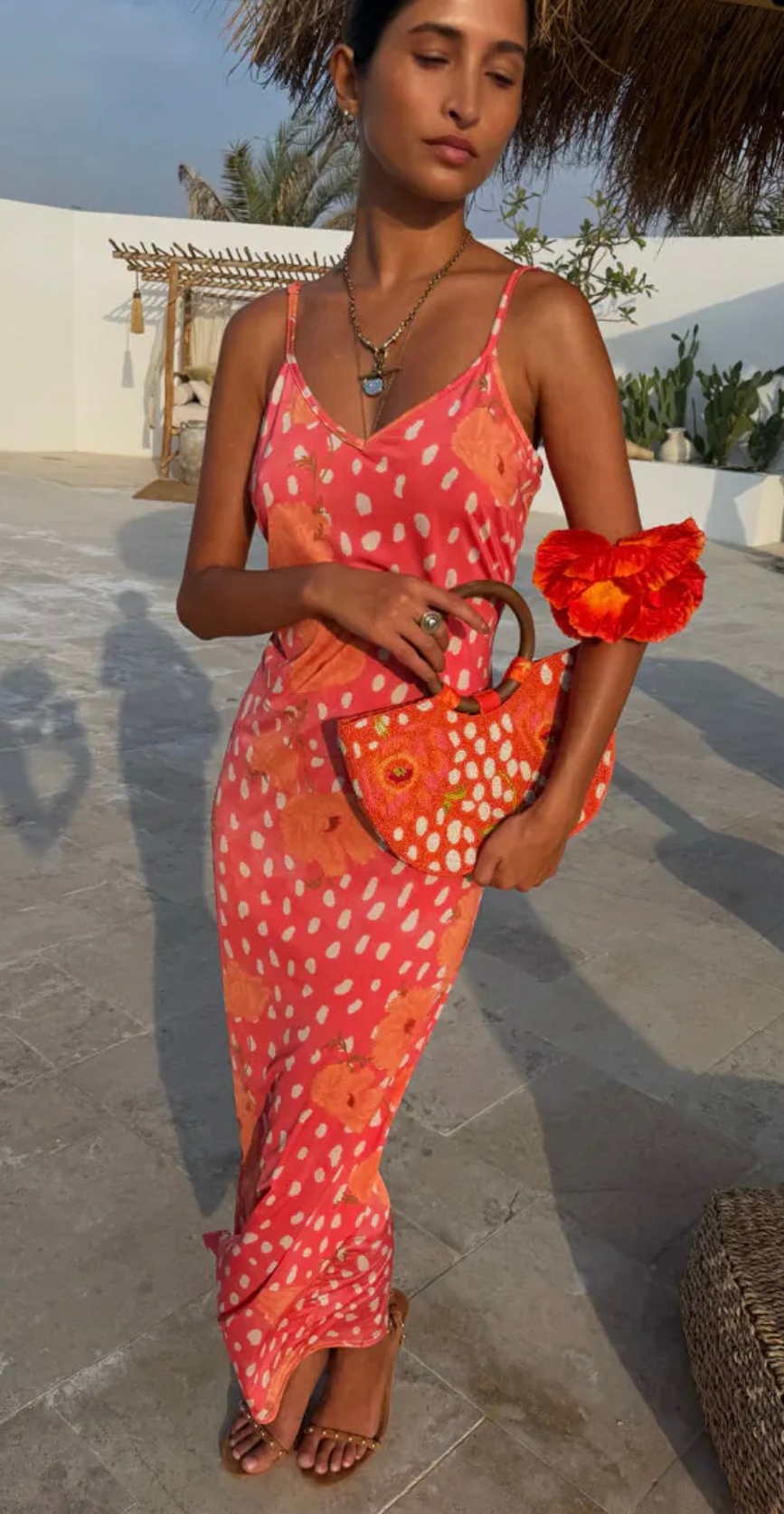 This dress is the definition of feel good dressing! A combination of the iconic poppy motifs and the new deer print in a stunning coral pink. The simple silhouette with a slight flared sleeve paired make it the perfect Summer Wedding guest dress.