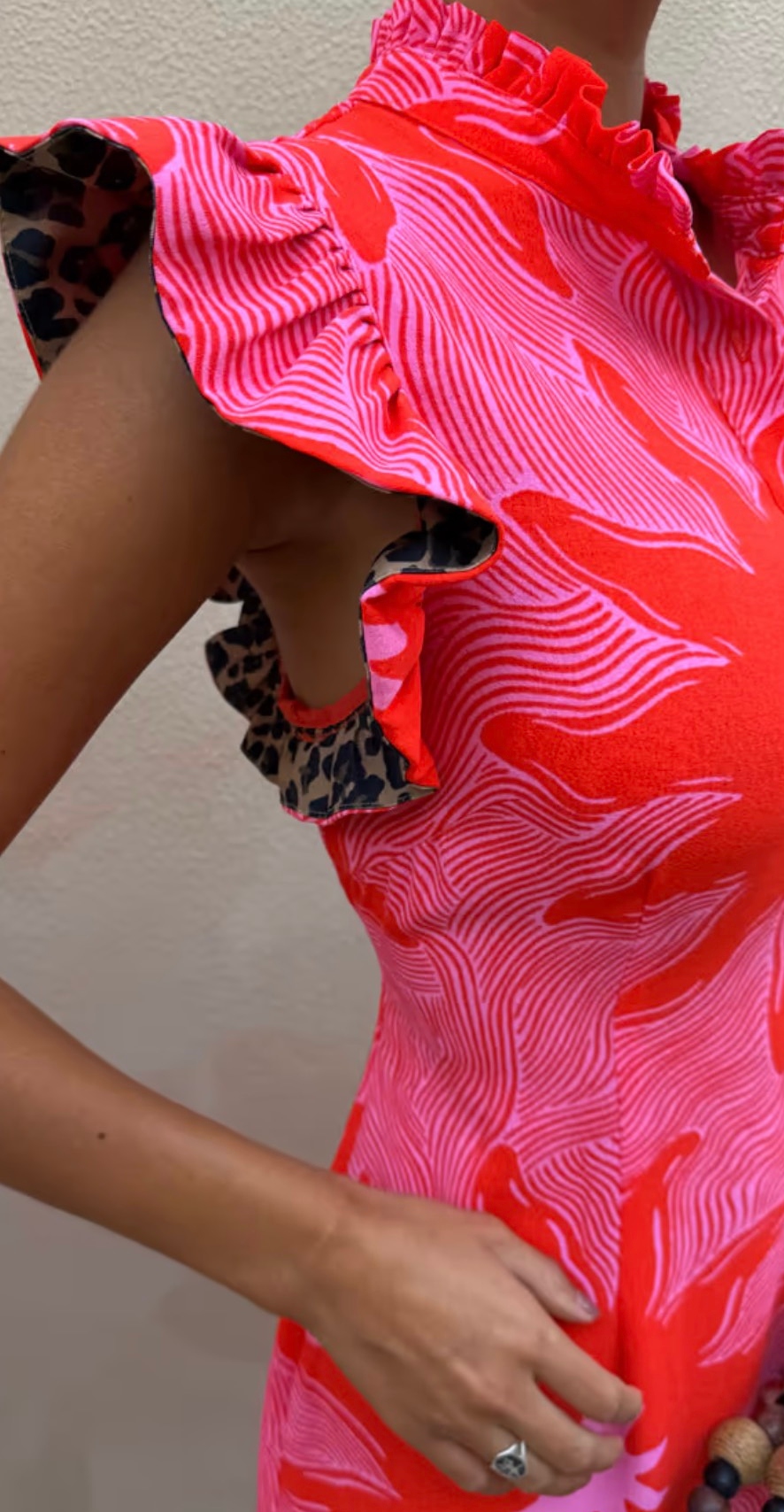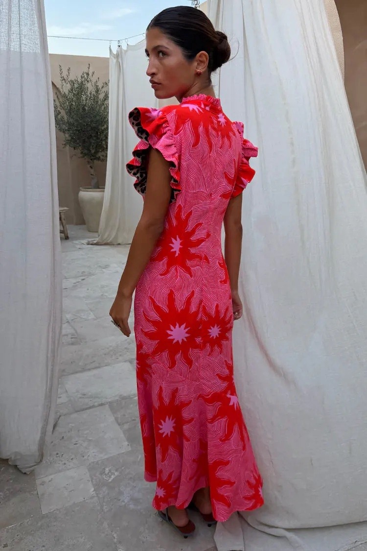 The stunning line detailing in the print feels so chic, with the red sun motifs, designed in house.