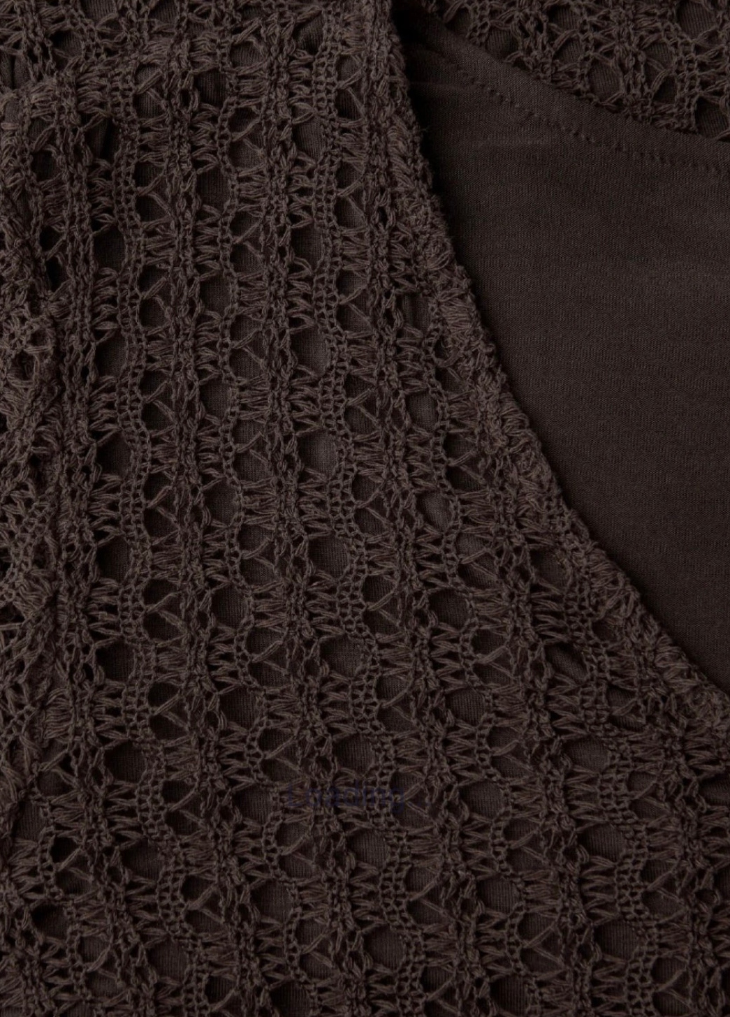 Cotton Crochet Style Dress in Brown with short sleeve and v neckline.