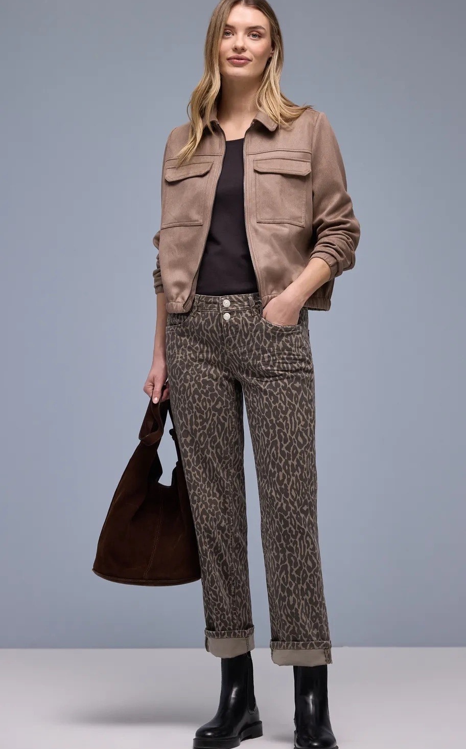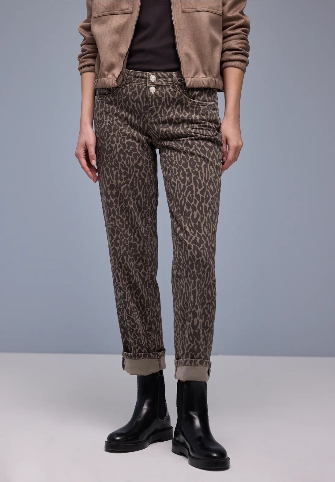 Street One Straight Leg Leo Print Washed Jean