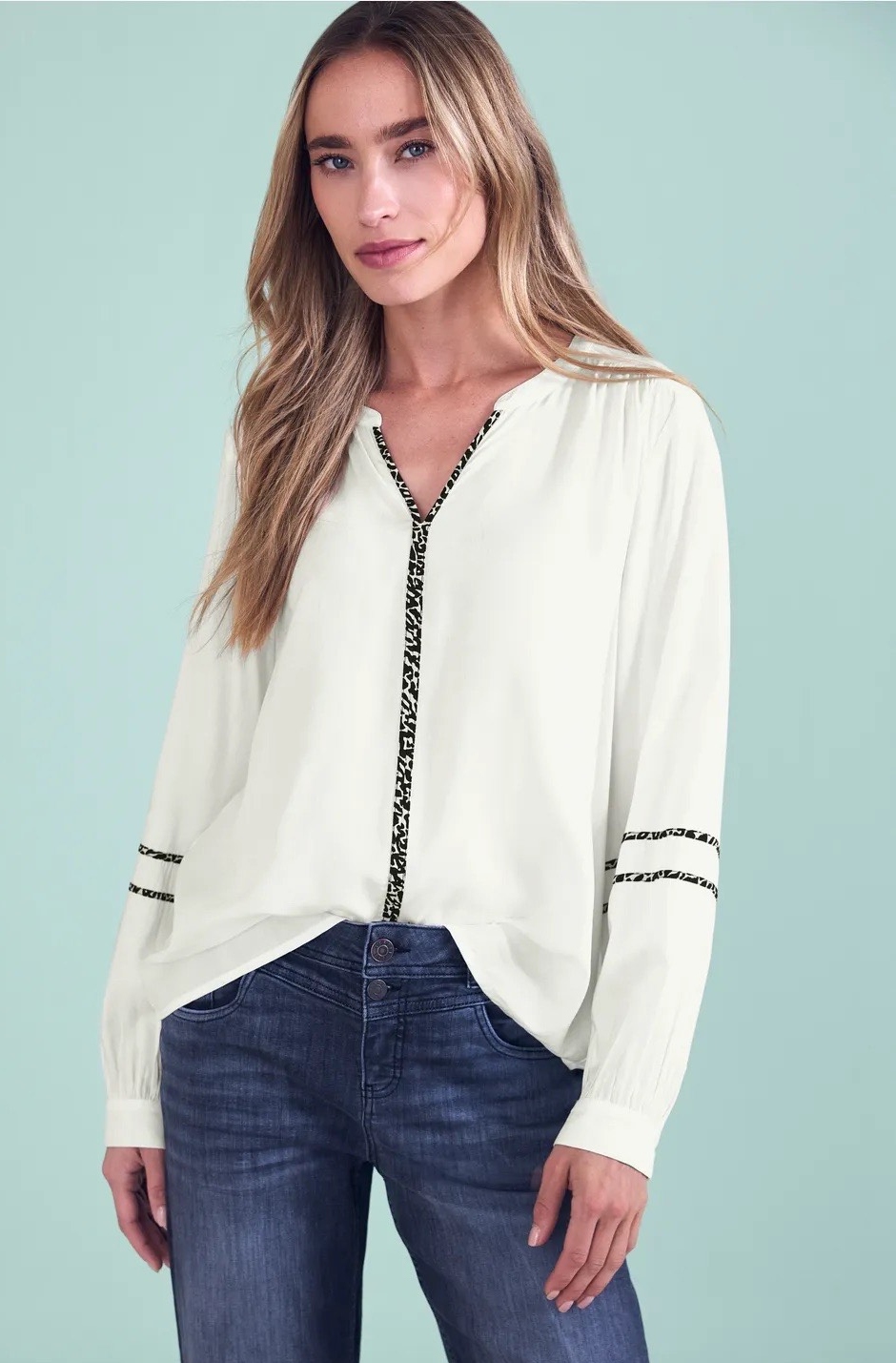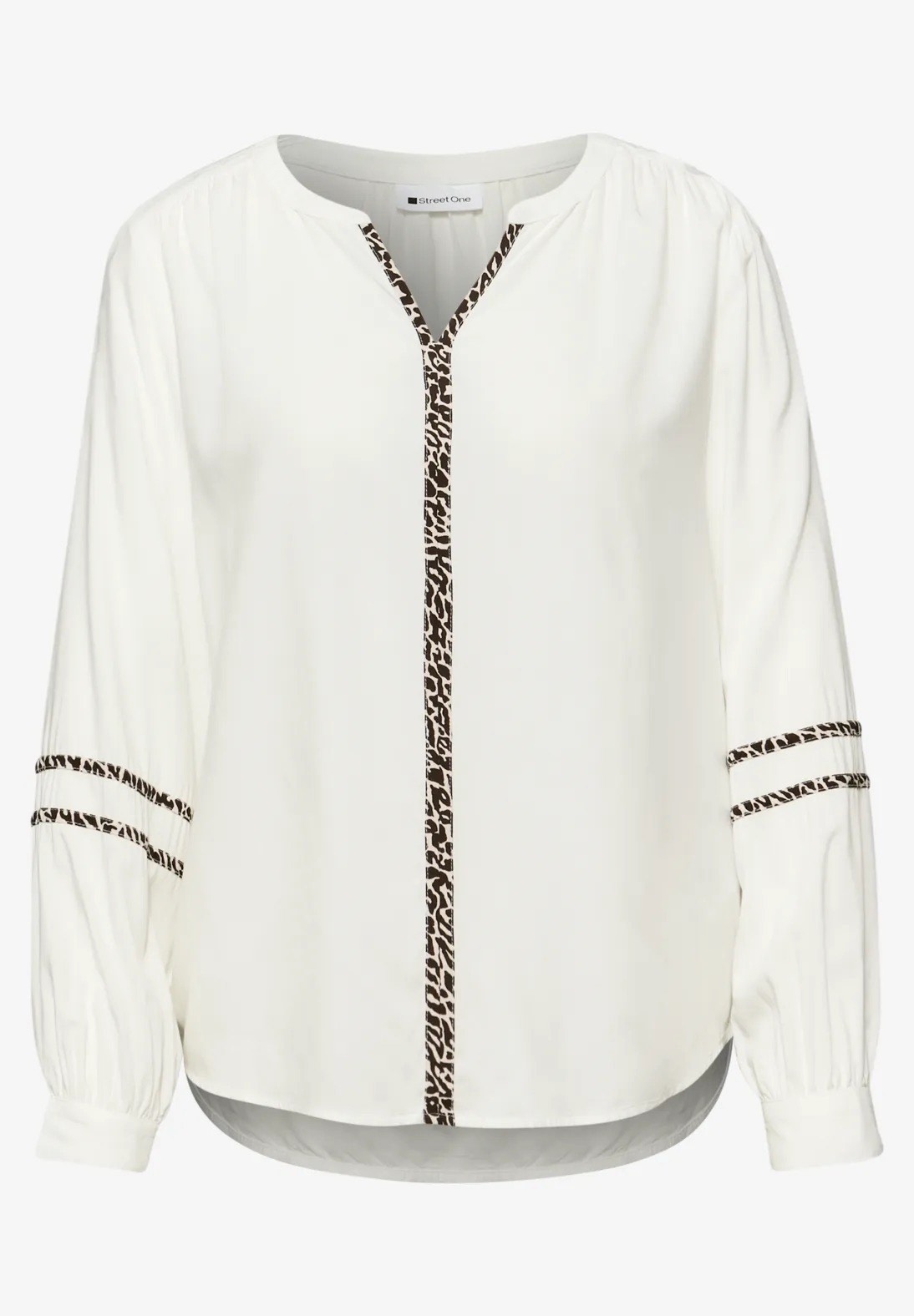 This tunic from Street One features stylish leopard print tape details. The split neck and gently rounded hem give the design a relaxed silhouette.