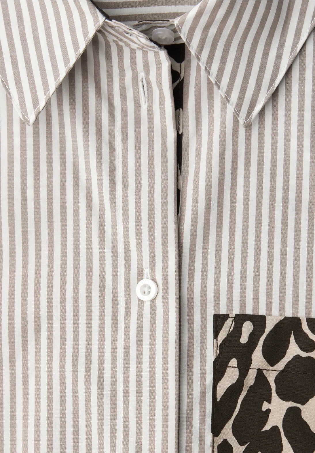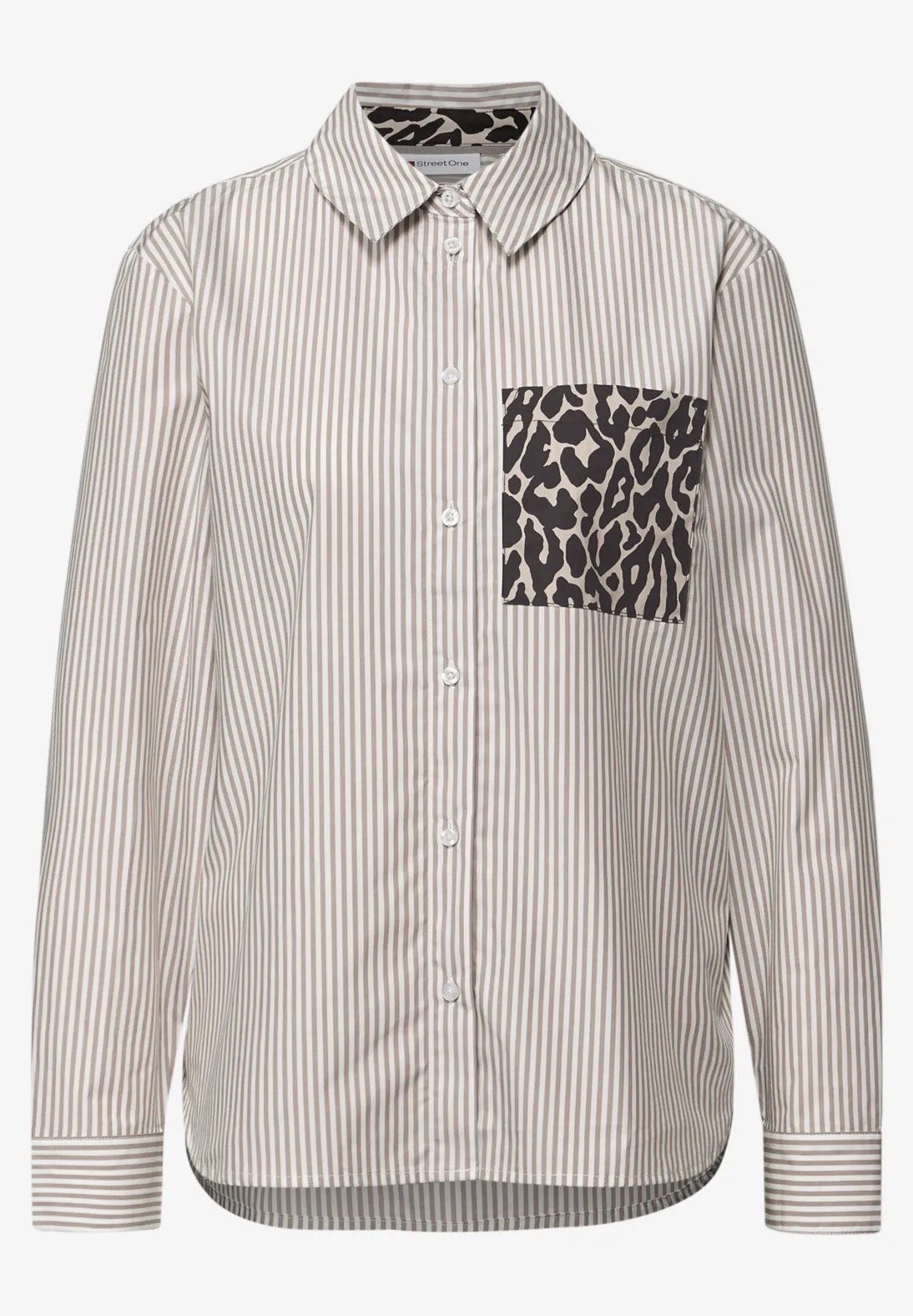 The striped shirt blouse by Street One for women convinces with classic lines and a modern twist. The leopard print on the breast pocket adds an exciting accent, while the pure cotton ensures a comfortable fit. A stylish companion for everyday life and the office.